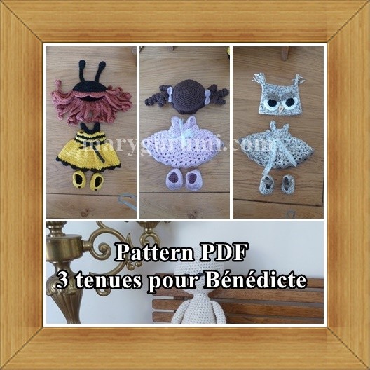Tutoriels pour réaliser 3 tenues de la poupée Bénédicte : Abeille, Fillette et hibou