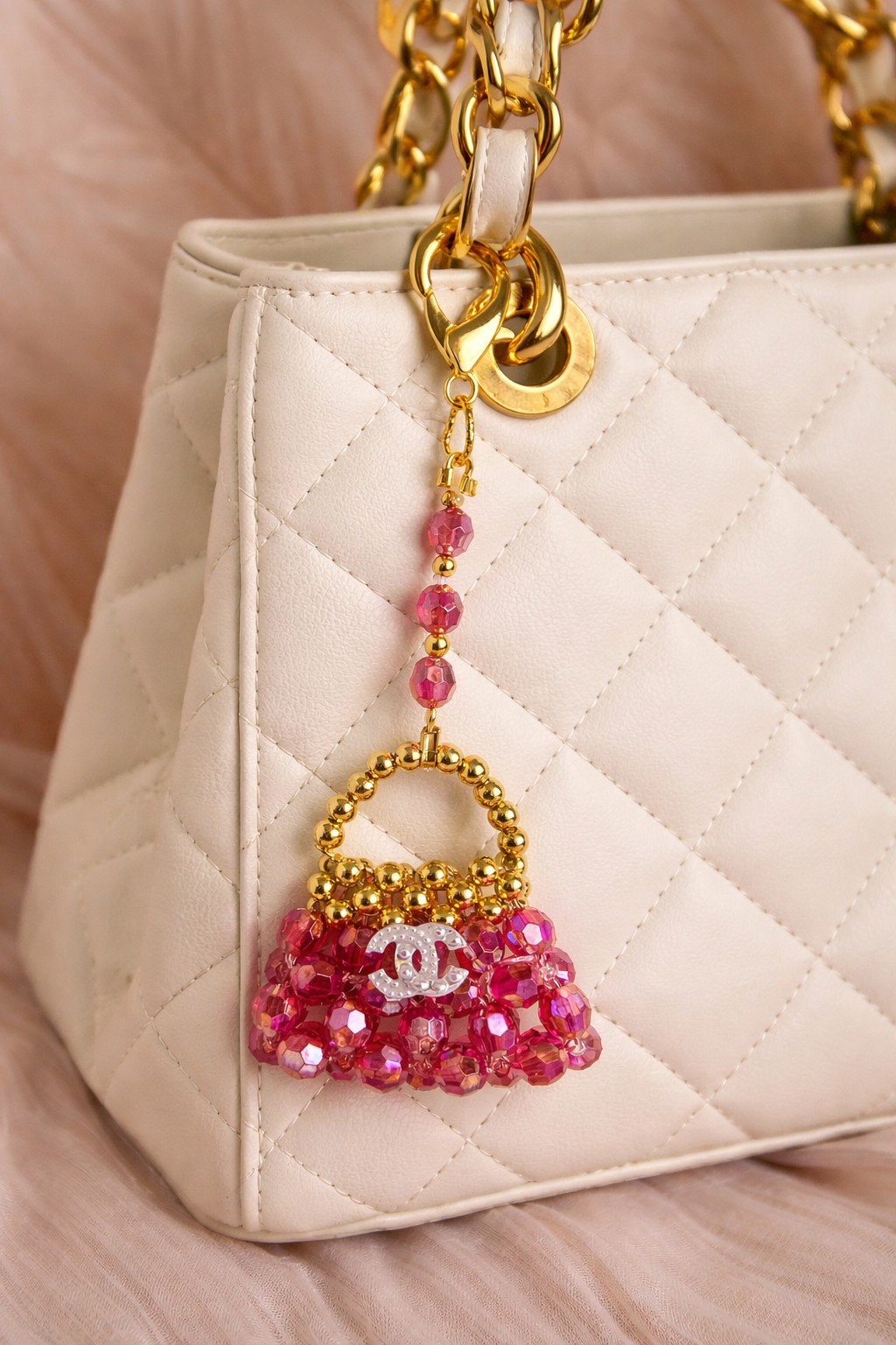 Bijou de sac d’environ 5 cm de hauteur, ce charm en perles rouges éclatantes sublimées par de délicates finitions dorées apporte une touche chic et lumineuse à votre accessoire préféré ; entièrement façonné à la main, il s’agit d’une création artisanale unique qui allie élégance et originalité.