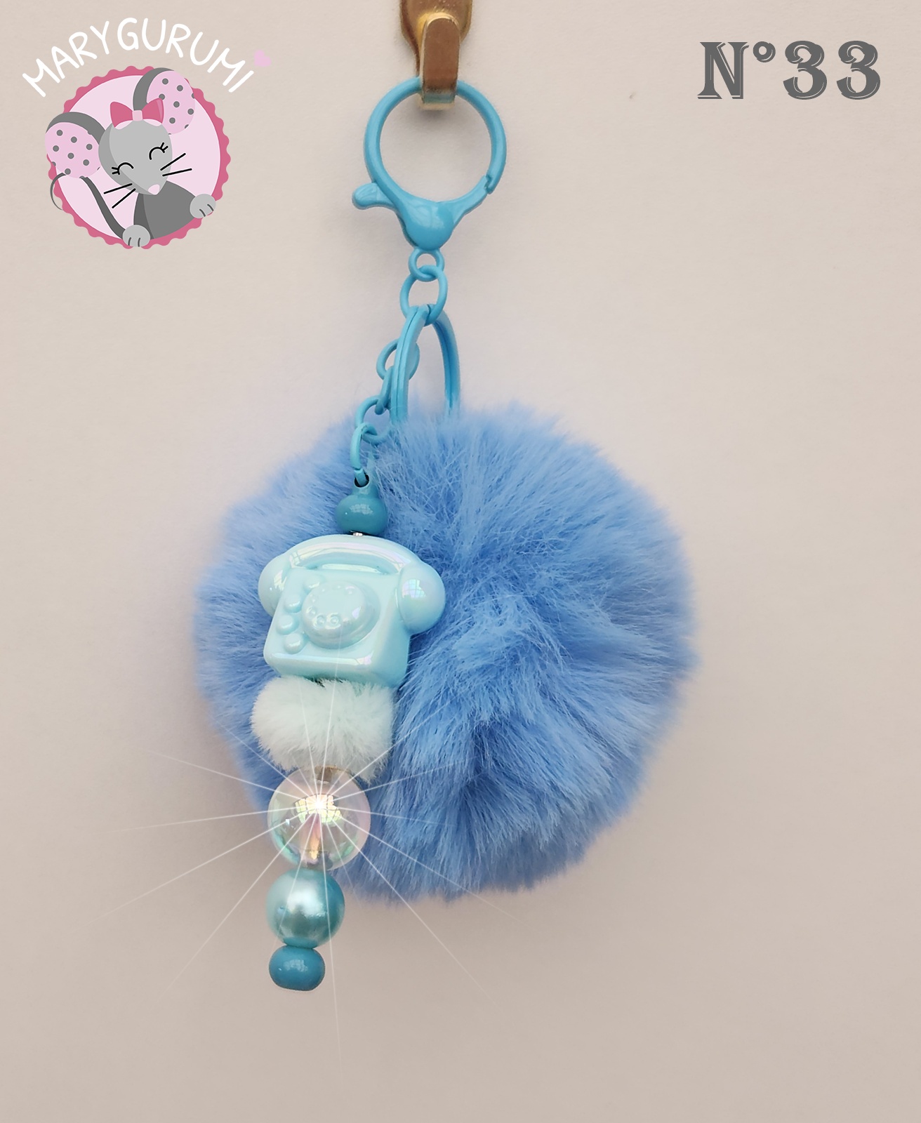 Original et plein de douceur, ce bijou de sac fait main de 11 cm associe un pompon moelleux, des perles aux reflets délicats et un petit téléphone décoratif pour apporter une touche ludique et tendre à ton sac.