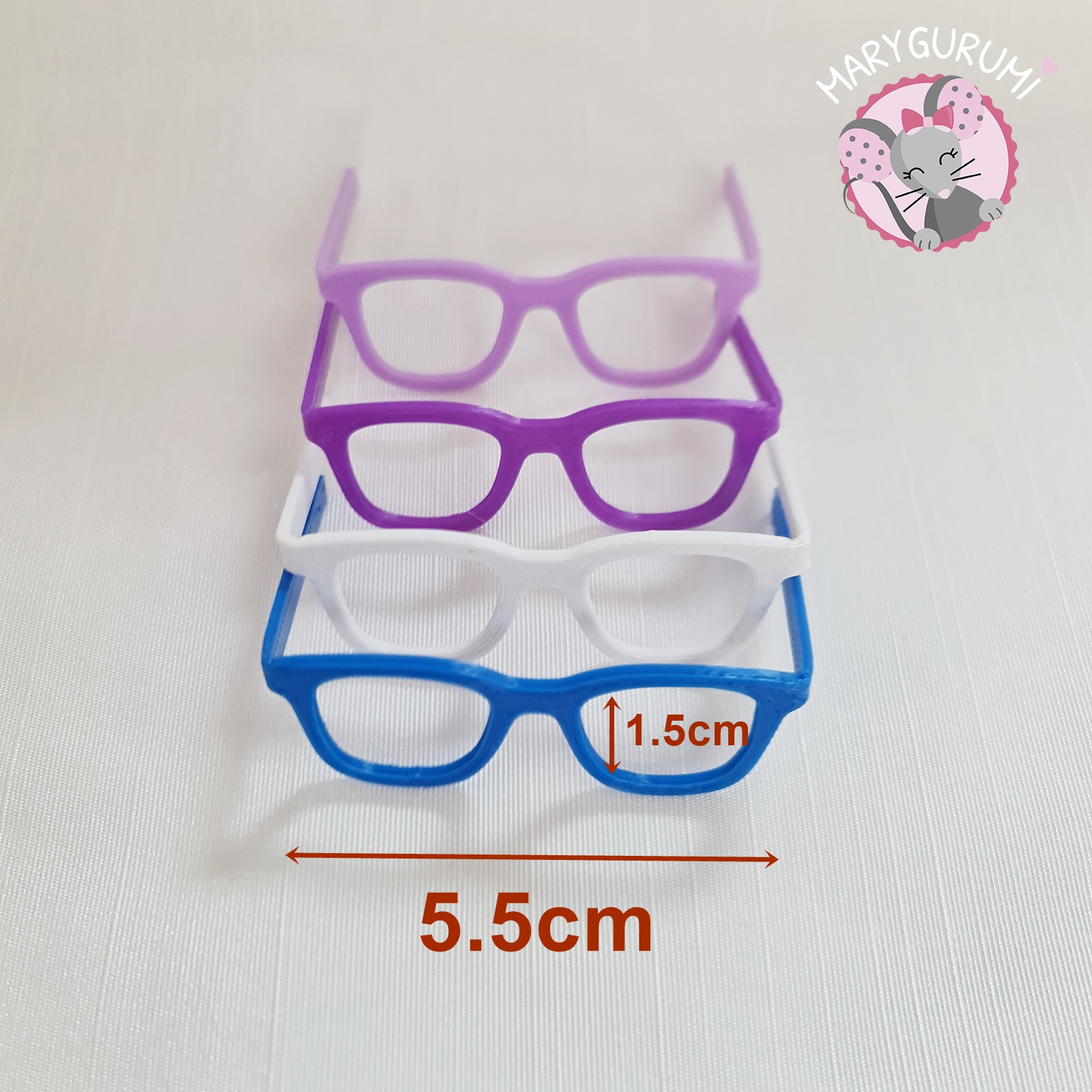 lunettes rectangles pour vos poupées de taille standard (modèle idéal pour les poupées de Croc’s Betty, Marygurumi et Tweety Dolls) , coloris au choix en impression 3D (matière PLA a base d’amidon de maïs, betterave, cannes a sucre, parce que c’est bien pour la planète