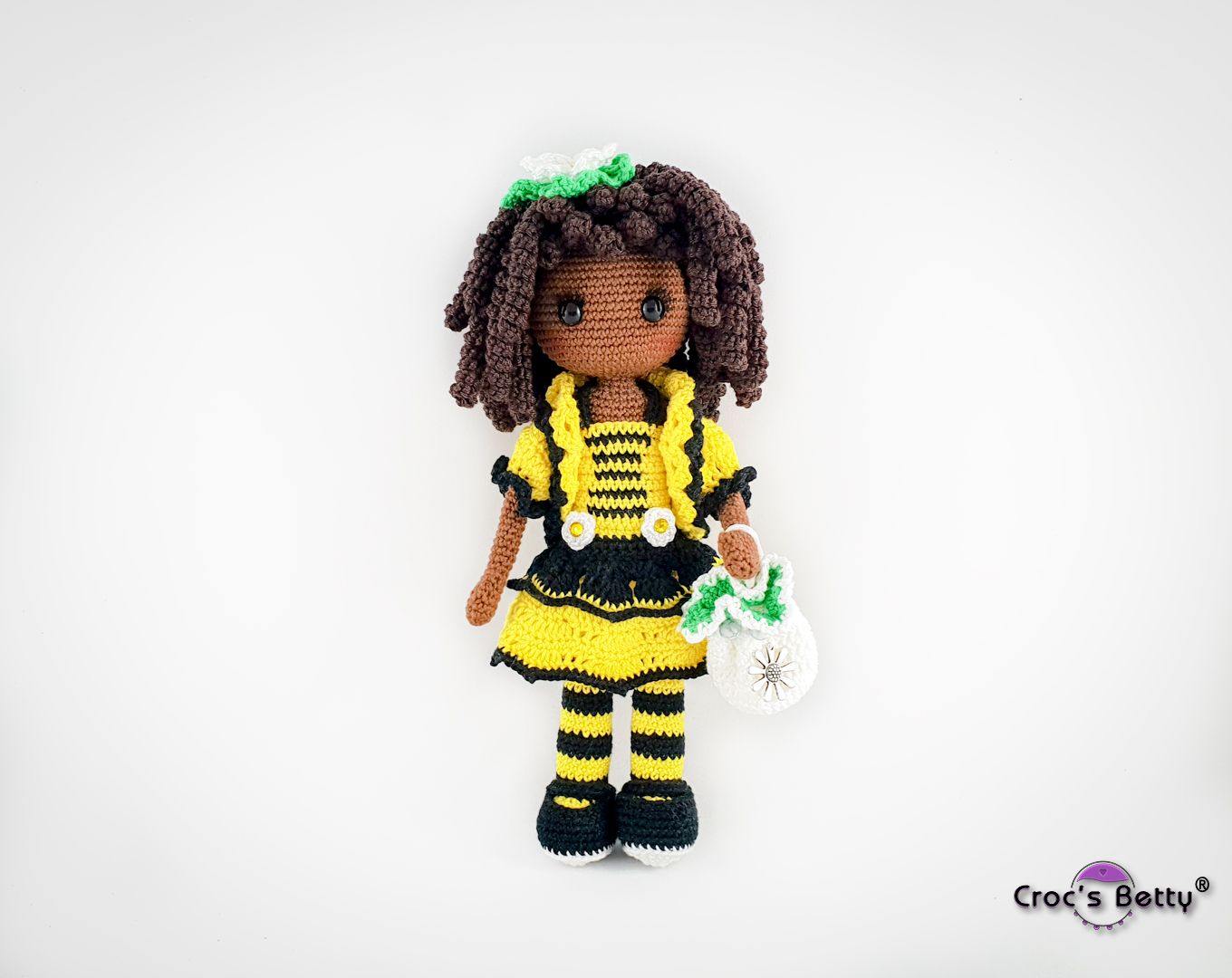 En suivant les instructions et les matériaux de ce tutoriel, Beeyoncé mesurera environ 28cm. Elle sera de taille différente si vous utilisez un matériel (laine, coton, crochet) de calibre différent. Les proportions resteront néanmoins cohérentes et le résultat final identique de manière proportionnelle.