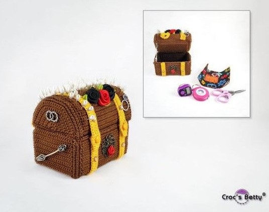 En suivant les instructions et les matériaux de ce tutoriel, le coffre mesurera environ 11cm (L) x 7cm (l) x 10cm (h). Le modèle sera de taille différente si vous utilisez un matériel (laine, coton, crochet) de calibre différent. Les proportions resteront néanmoins cohérentes et le résultat final identique de manière proportionnelle.