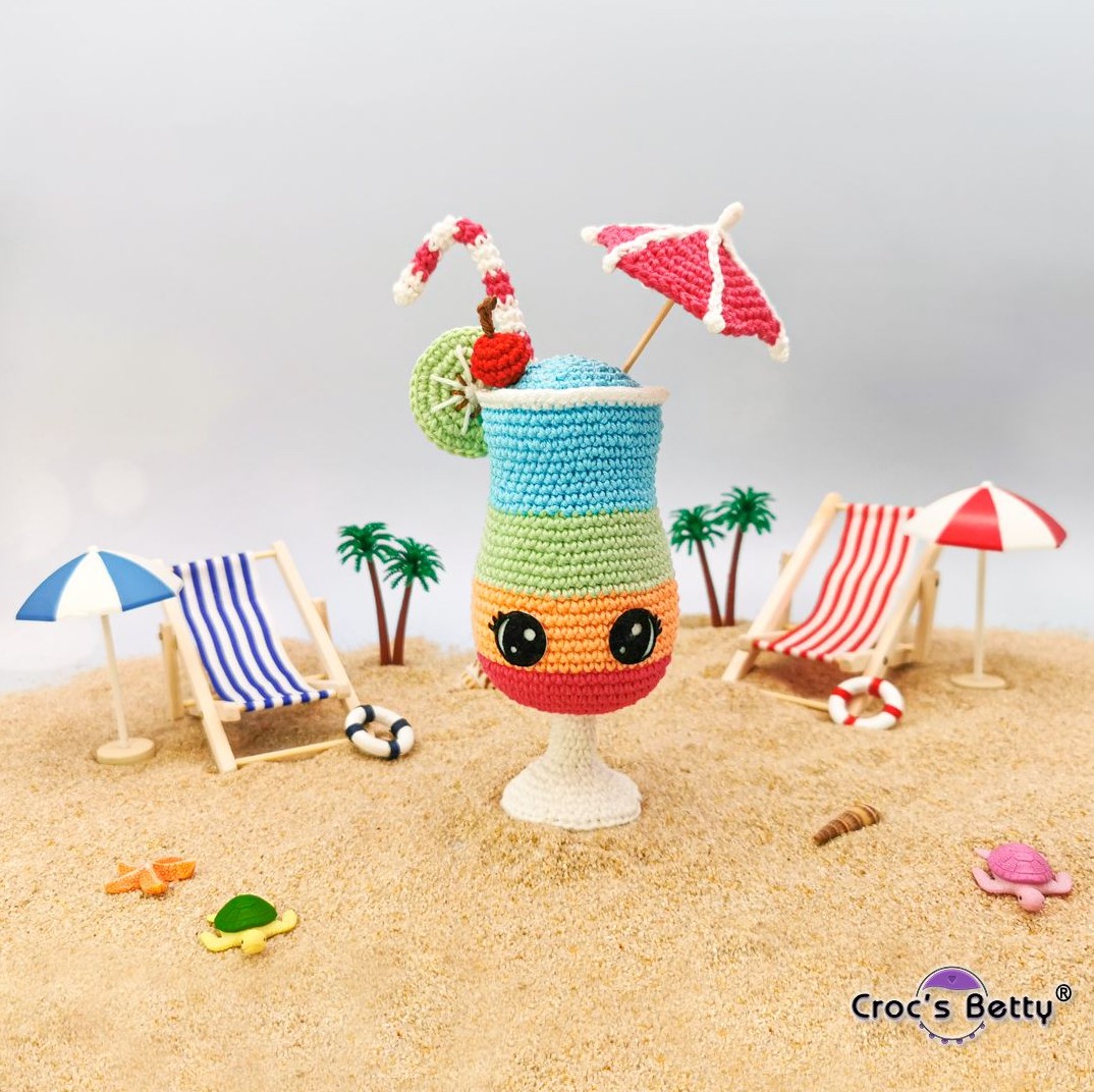 En suivant les instructions et les matériaux de ce tutoriel, le Cocktail Kawaii mesurera environ 16cm. Il sera  de taille différente si vous utilisez un matériel (laine, coton, crochet) de calibre différent. Les proportions resteront néanmoins cohérentes et le résultat final identique de manière proportionnelle.